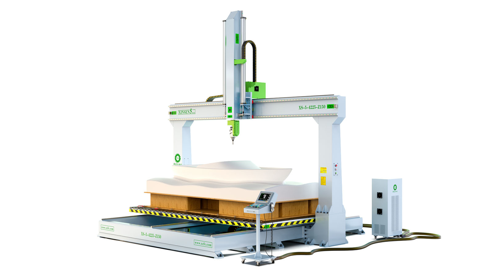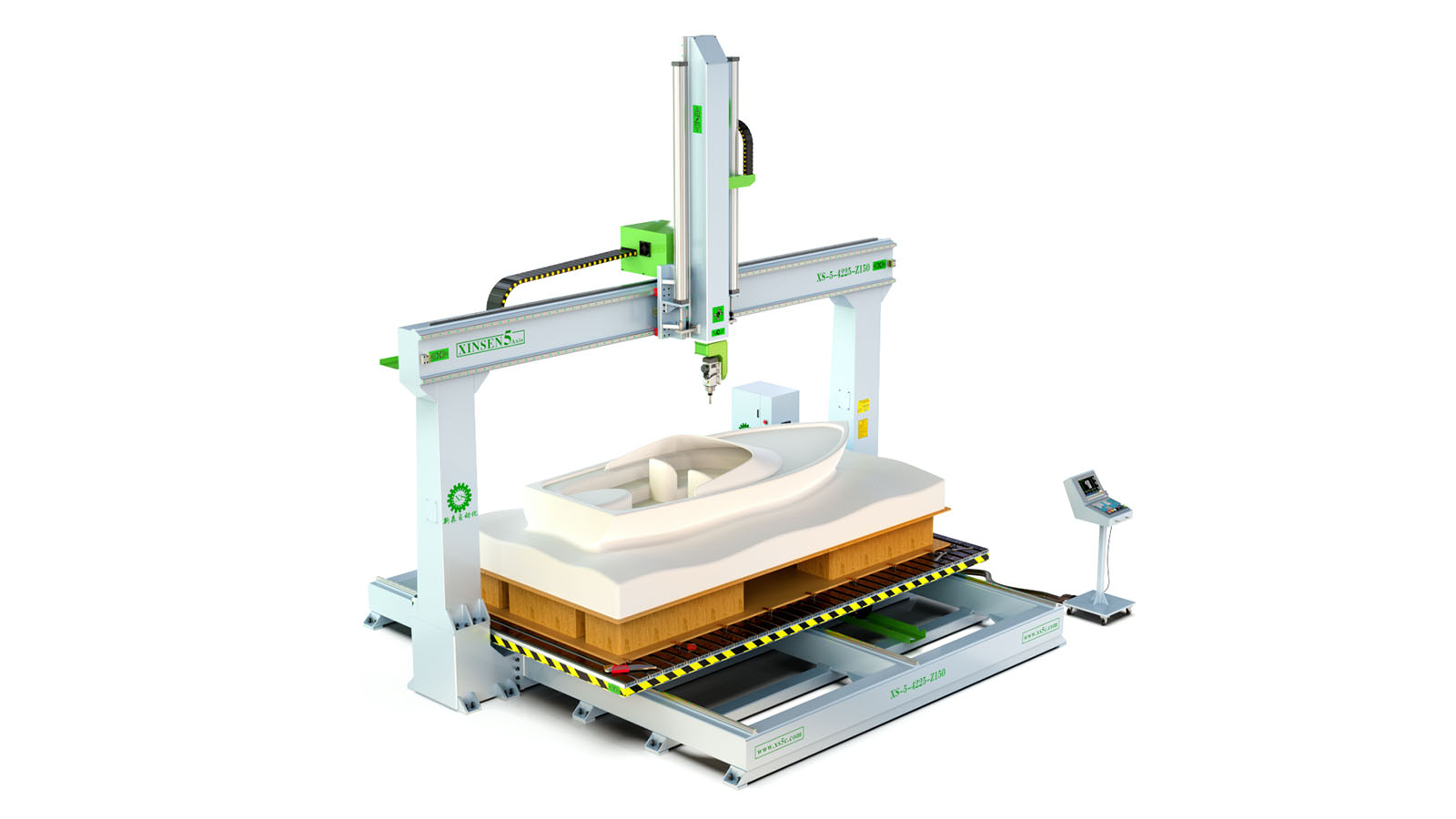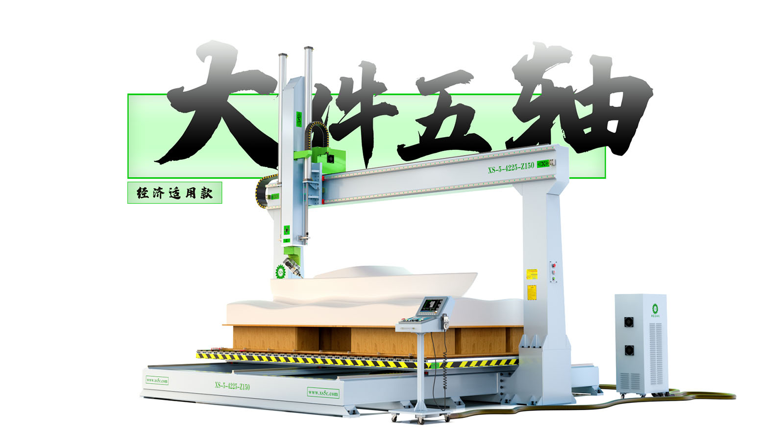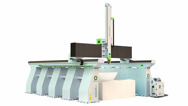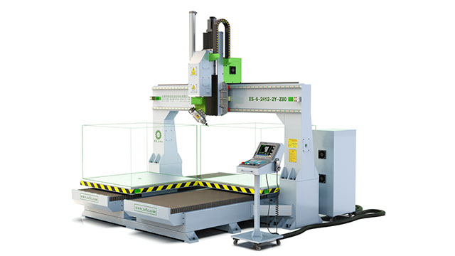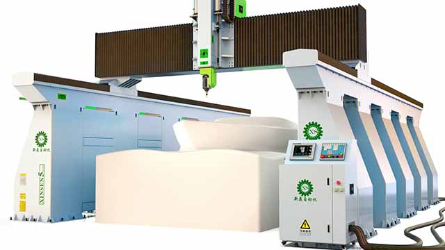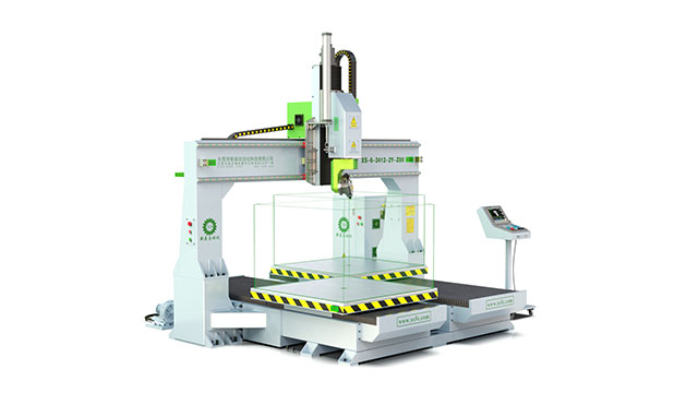 3、针对 大型厚片吸塑、 大型卫浴陶瓷、 大型泡沫雕塑、 大型碳纤维、 等非金属材料而设计的五轴加工机床