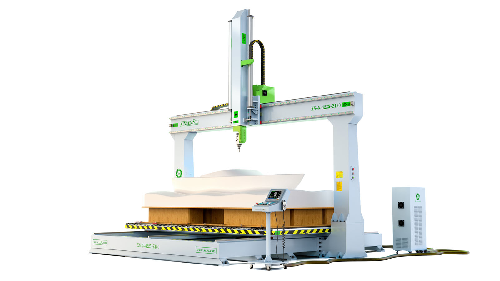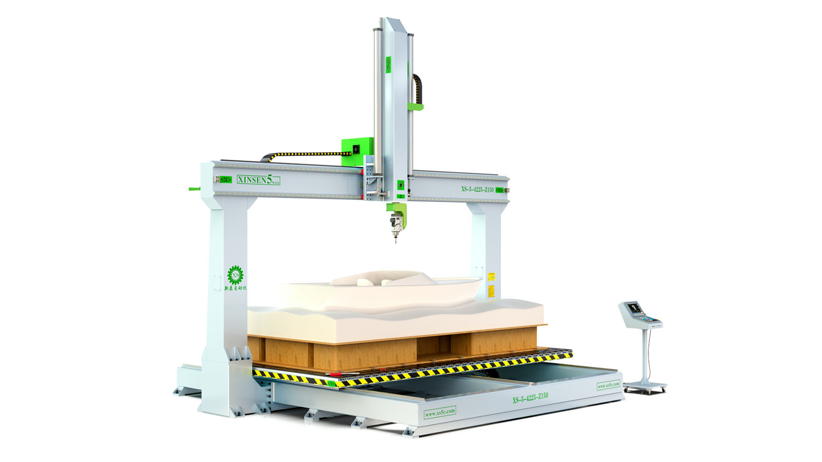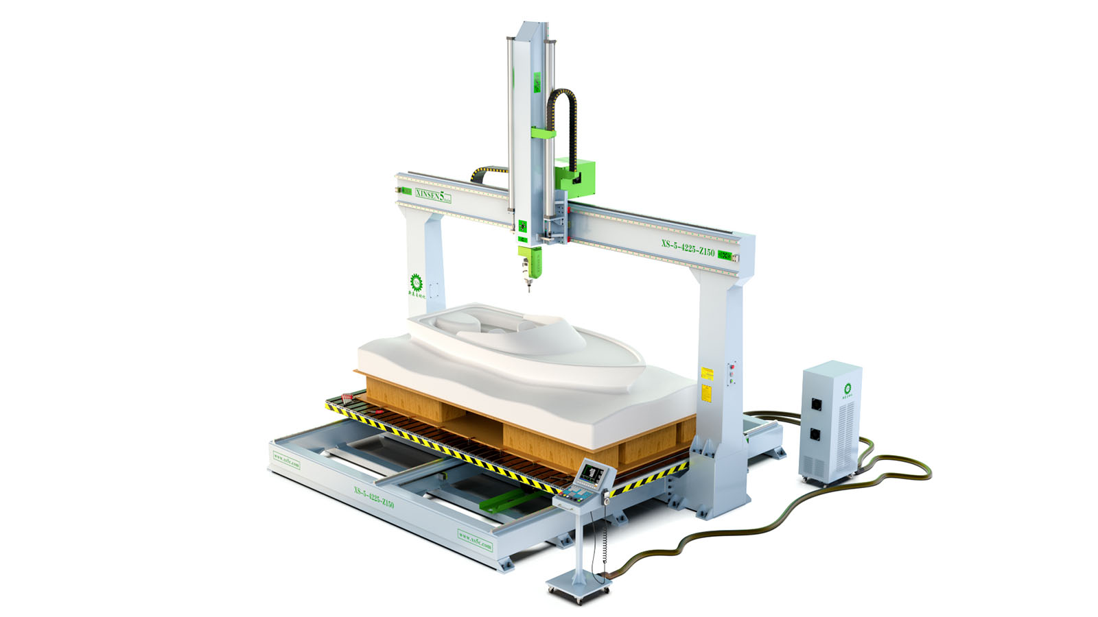 3、针对 大型厚片吸塑、 大型卫浴陶瓷、 大型泡沫雕塑、 大型碳纤维、 等非金属材料而设计的五轴加工机床